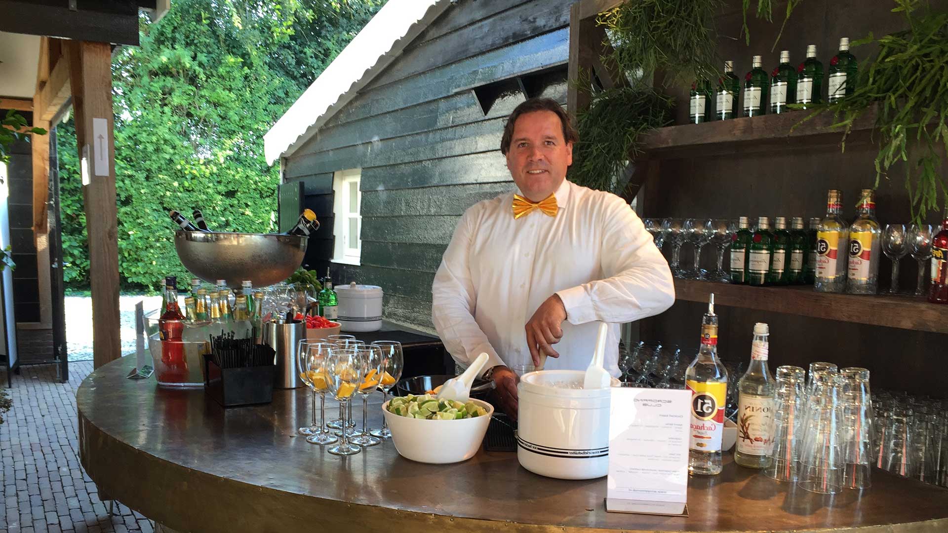 Keukenspullen: office mesje, snijplank, muddler (stamper), barlepel, barmaatje. Hobster (whisky) glas, rietje, roerstaafje
